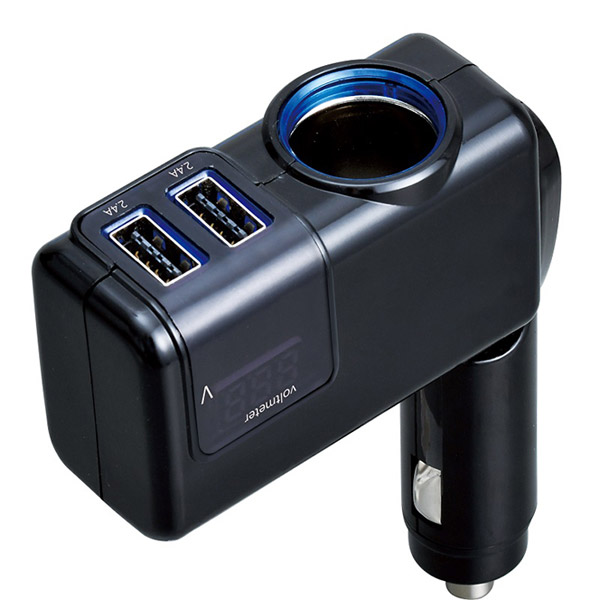 | 商品名 | USB2ポート DC充電+電圧計 モニタリングダイレクトソケット 計4.8A ブラック F307 |