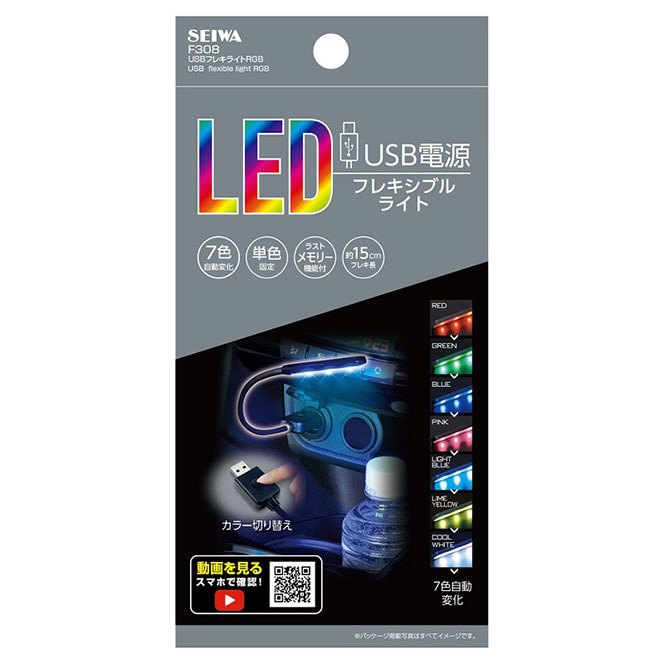 車やご家庭のUSB電源でご使用いただける7色自動変化と淡色固定点等が選べるLEDフレキライト