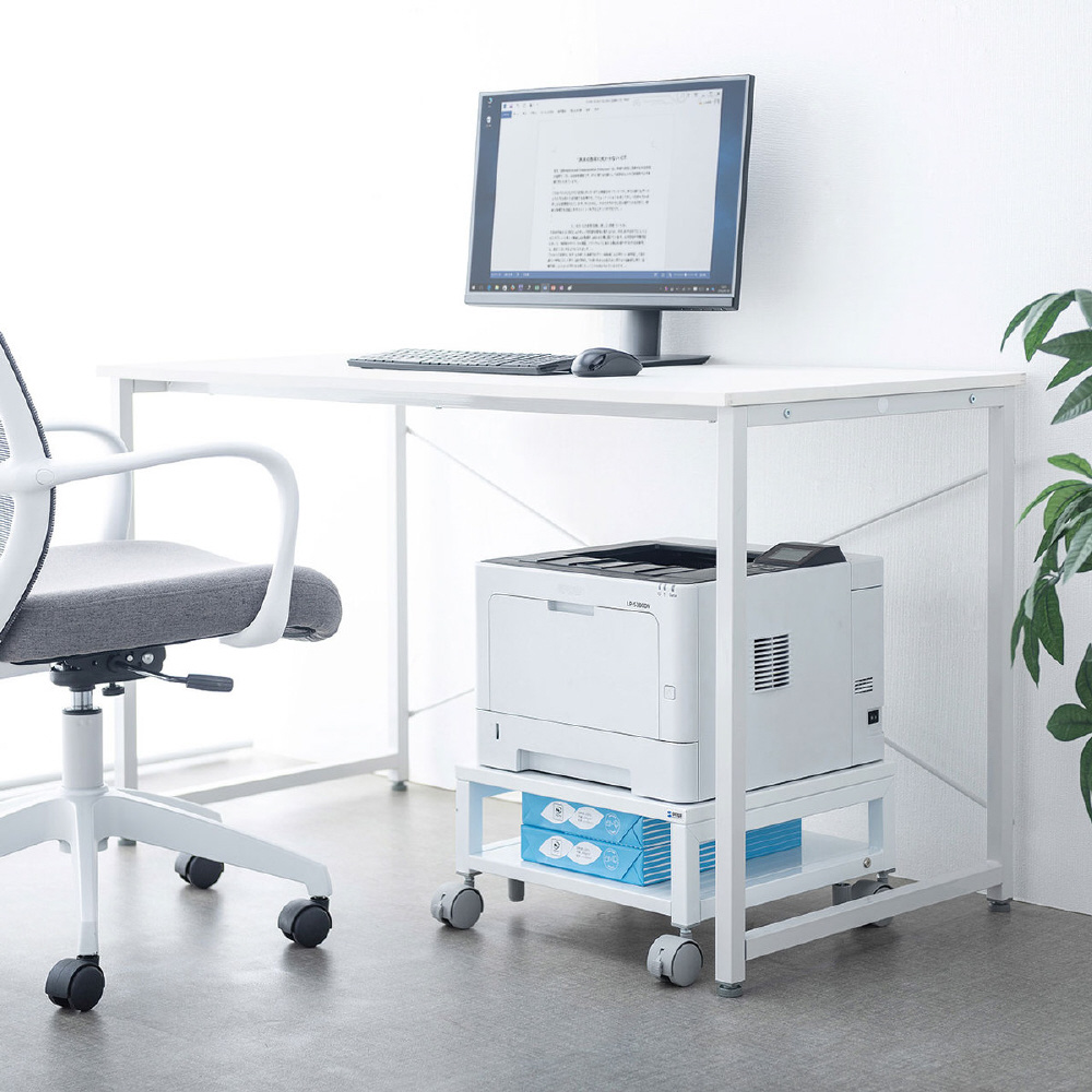 A4用紙が置ける棚付き小型プリンター用プリンタースタンド。ホワイト。