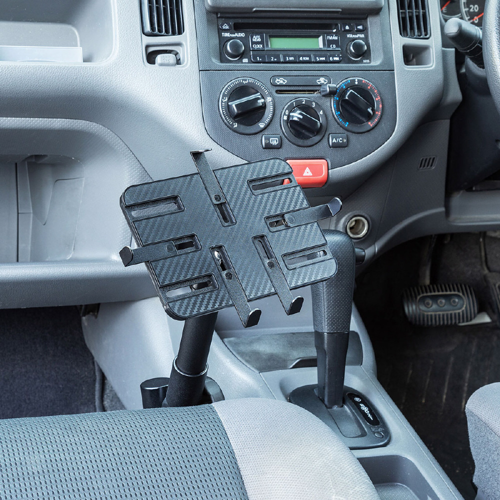 ●車内にタブレットPCを固定できる、タブレットスタンドです。