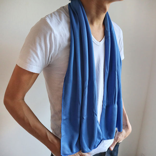 濡らさなくてもひんやりする、接触冷感素材を使用していますので濡らすのが嫌な方でもOK。水で濡らすことで、よりひんやり感が増します。
