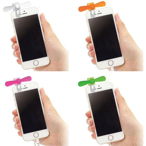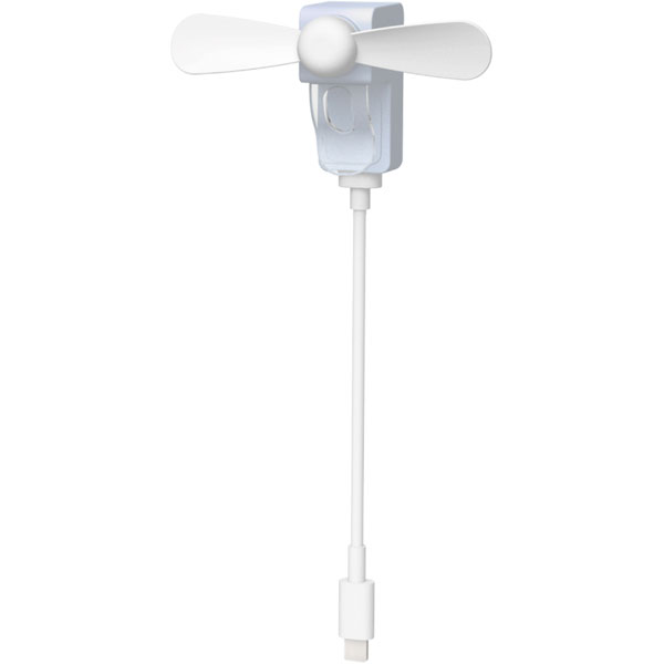 スマホに直接取付、操作しながらファンの運転が可能。iPhone用ライトニングケーブル付属。