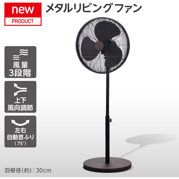 おしゃれなデザインでインテリアのアクセントに。風量3段階。左右自動首振り。