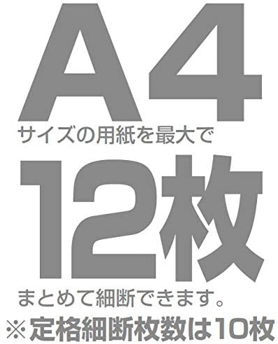 A4サイズの用紙を12枚まとめて細断可能。(A4上質紙64g/平方メートル)