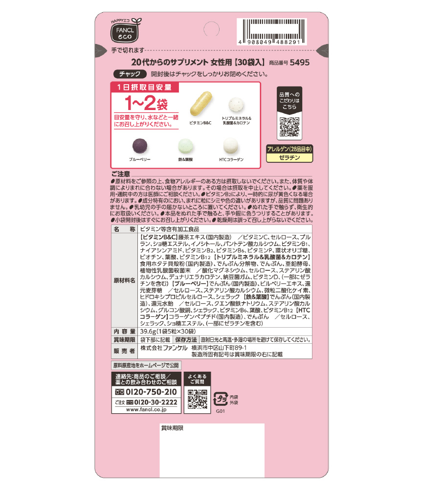 | 商品名 | 20代からのサプリメント 女性用 30袋 |