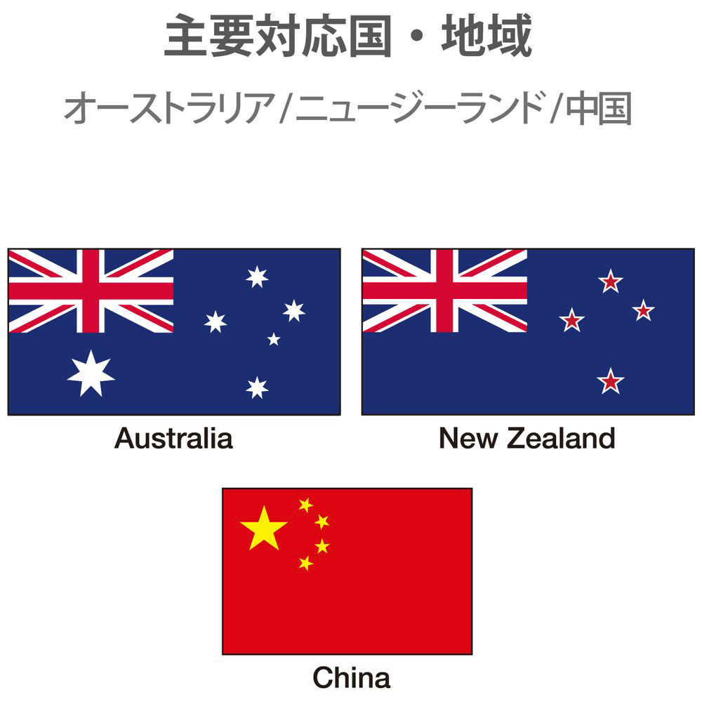 日本のAタイプコンセントを オーストラリア、ニュージーランド、フィジー、サモア、トンガなどで使われるOタイプコンセントに変換できるアダプタ。