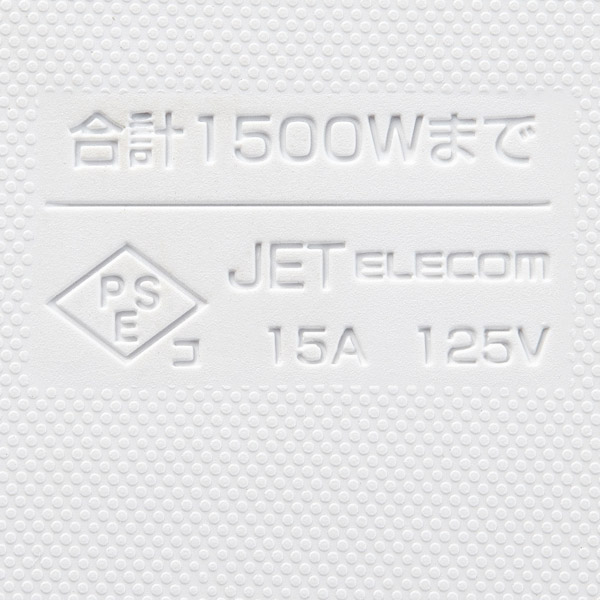 | 仕様1 | ■本体差込口形状:2ピン(2P、2pin)(側面に設置した1個口のみ3ピン(3P、3pin)対応※アース機能はありません) ■本体差込口個数:3個口(3口、3コ口) ■プラグ仕様:2ピン(2P、2pin) ■コード長:3.0m ■定格:125V・15A・1500W ■雷ガード:○ ■ほこりシャッター:○ ■絶縁キャップ付きプラグ:○ ■二重被ふく:○ ■スイングプラグ:○ ■マグネット:○ ■カラー:ホワイト(白) |