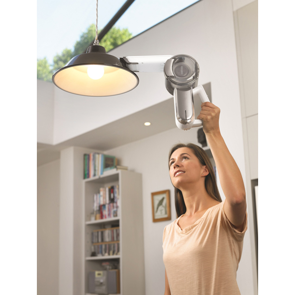 お掃除にあわせてノズル角度調節。継ぎ足し充電や放電に強いリチウムバッテリーを搭載。
