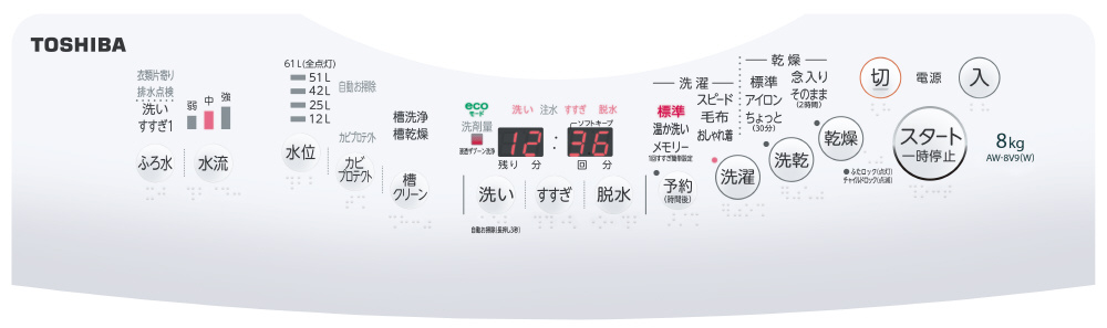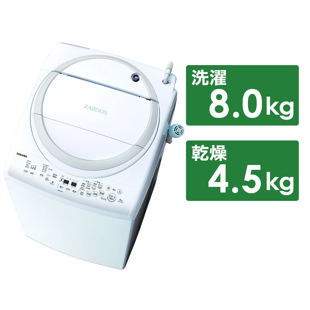 | 商品名 | タテ型洗濯乾燥機 ZABOON(ザブーン) グランホワイト AW-8V9-W [洗濯8.0kg /乾燥4.5kg /ヒーター乾燥(排気タイプ) /上開き] |