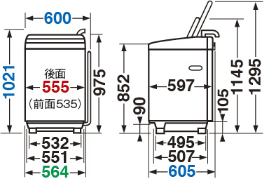 | 本体サイズ(幅×高さ×奥行)mm | 600×1021×605mm |