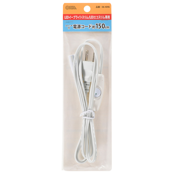 「LEDイーブライトスリム」「LEDエコスリム」専用スイッチ付電源コード