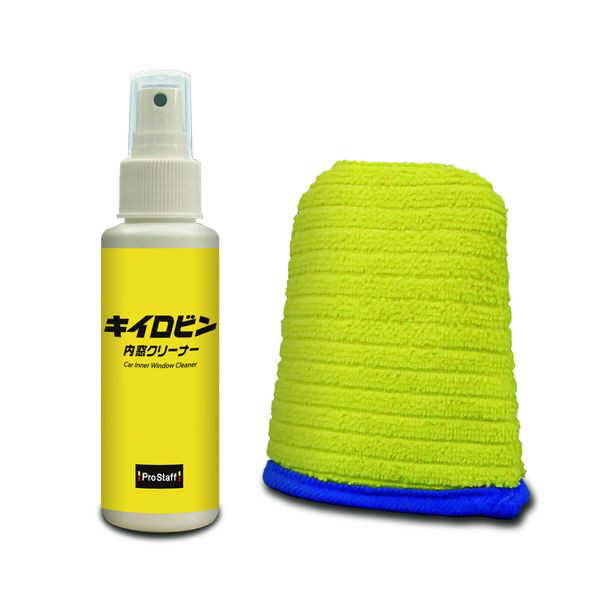 A68 洗車用品 ガラス油膜&被膜落とし剤 ガラスクリーナー キイロビン 内窓クリーナー 専用マイクロファイバーグローブ付き A-68 【864】