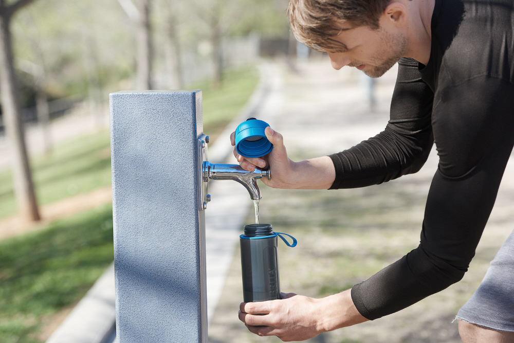 ・スクイーズ(押し出し)してスピーディーに飲める浄水機能付きボトル。