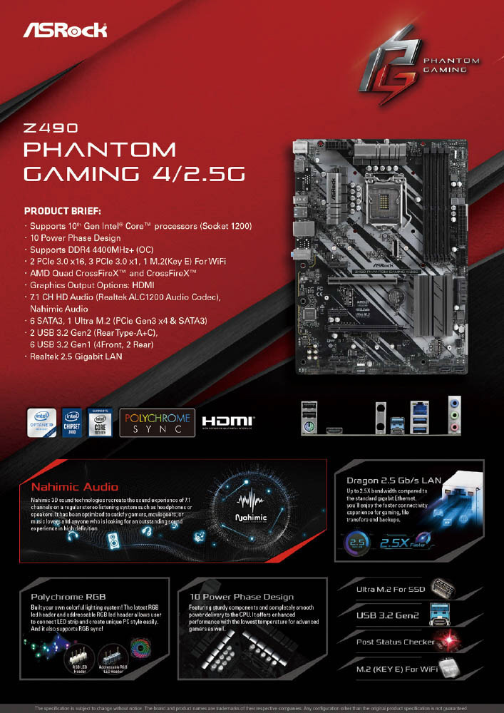 マザーボード Z490 Phantom Gaming 4/2.5G [ATX /LGA1200]