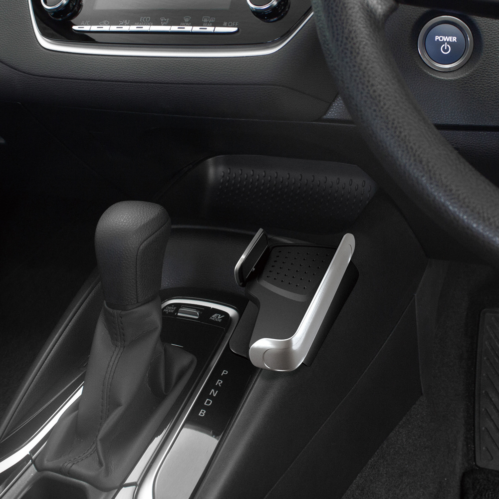 ●シフトノブ横のパネルに両面テープで貼り付けるだけの簡単装着。