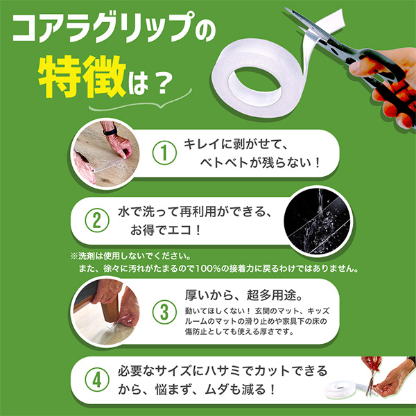 | 商品名 | 両面テープ (2mm厚・3cmx5m) コアラグリップ KG-01 |