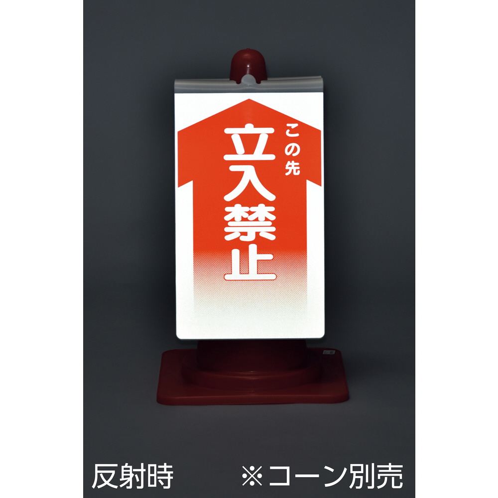 カラーコーンに被せるだけでサインスタンドとして使用できます。