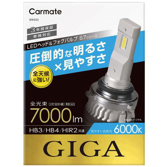 | 商品名 | LEDヘッドバルブ GIGA S7 6000K HB3/HB4/HIR2 白色光 7000lm BW552 |
