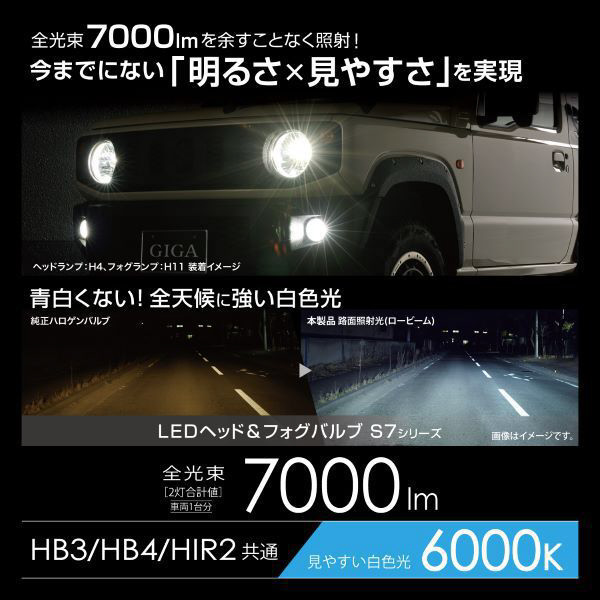 LEDヘッドバルブ GIGA S7 6000K HB3/HB4/HIR2 白色光 7000lm BW552