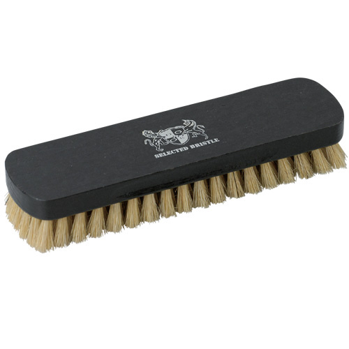 靴クリームの塗布、磨き込みに適した100%天然豚毛ブラシ。しっかりコシのある毛足で作業が手早く行えます。