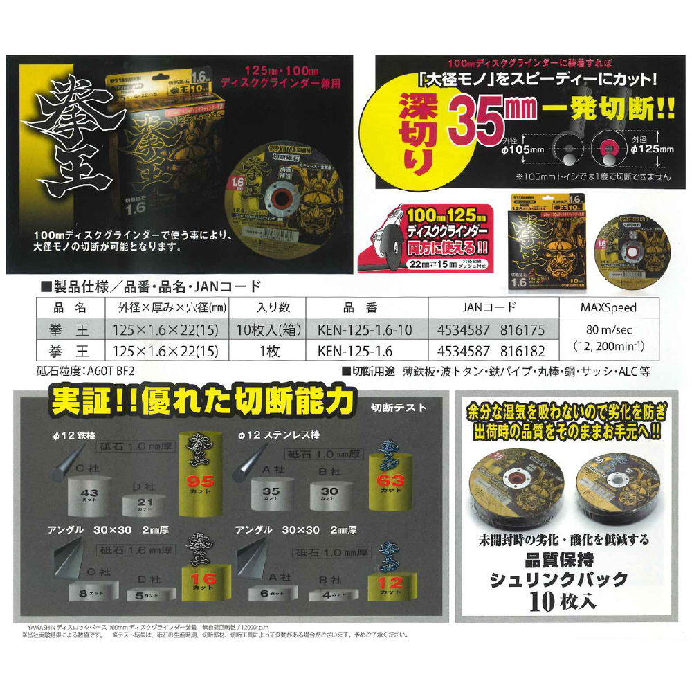 YAMASHIN 拳王 切断砥石 125x1.6 10枚 YAMASHIN KEN-125-1.6-10
