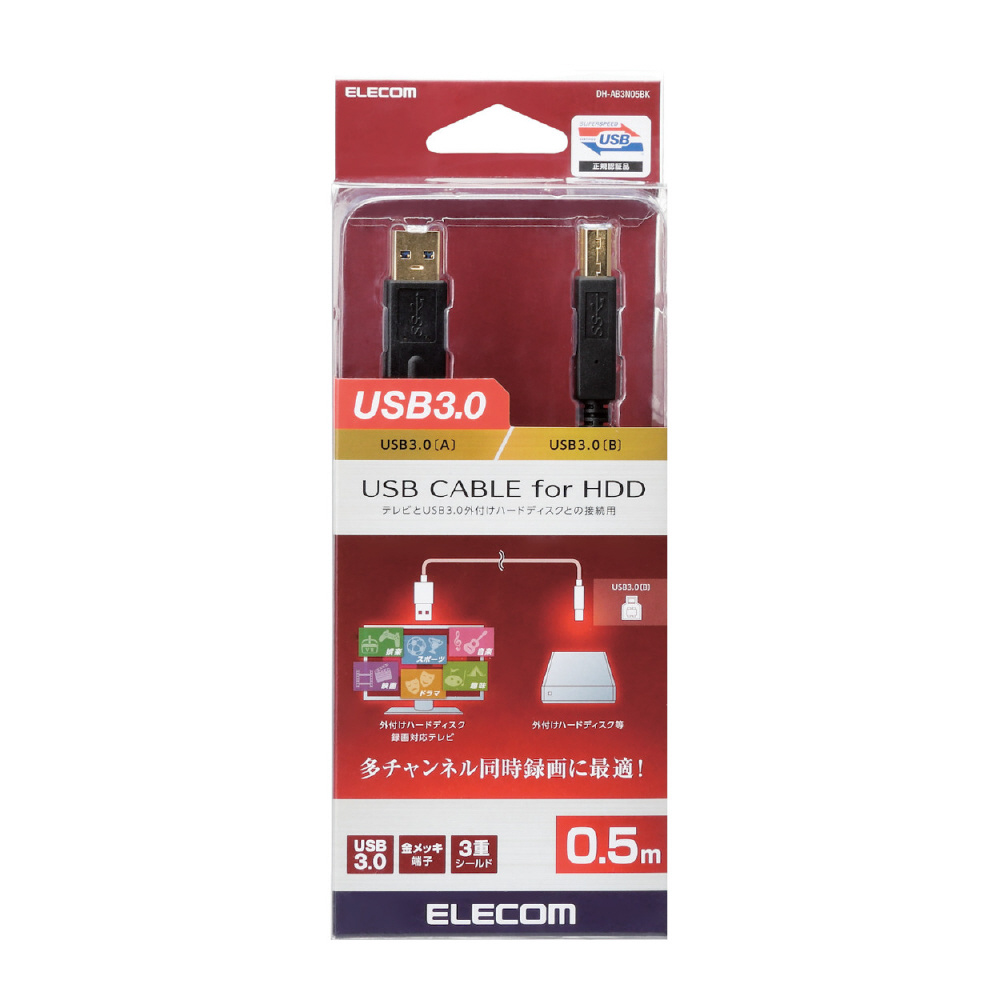 USB3.0ケーブル A-Bタイプ AV売場用 0.5m ブラック DH-AB3N05BK