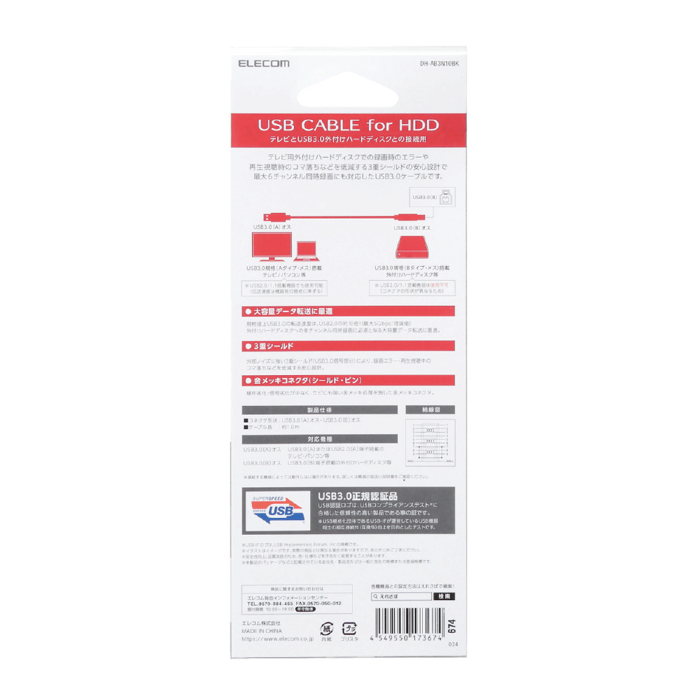 テレビ用外付けハードディスクでの録画時のエラーや再生視聴中のコマ落ちなどを低減する3重シールドの安心設計! 最大6チャンネル同時録画にも対応したUSB3.0ケーブル! 信頼性の高いUSB3.0正規認証品!