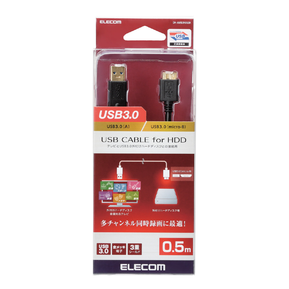 | 仕様1 | コネクタ形状:USB3.0(Standard-A)オス-USB3.0(micro-B)オス 対応機種:USB3.0(Aタイプ)端子搭載の外付けハードディスク録画対応テレビ及びUSB3.0(micro-B)端子搭載の外付けハードディスクドライブ等 ケーブル長:約0.5m ※コネクタを除く |