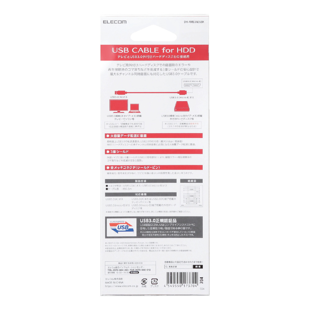 USB3.0ケーブル A-microBタイプ AV売場用 0.5m ブラック DH-AMB3N05BK