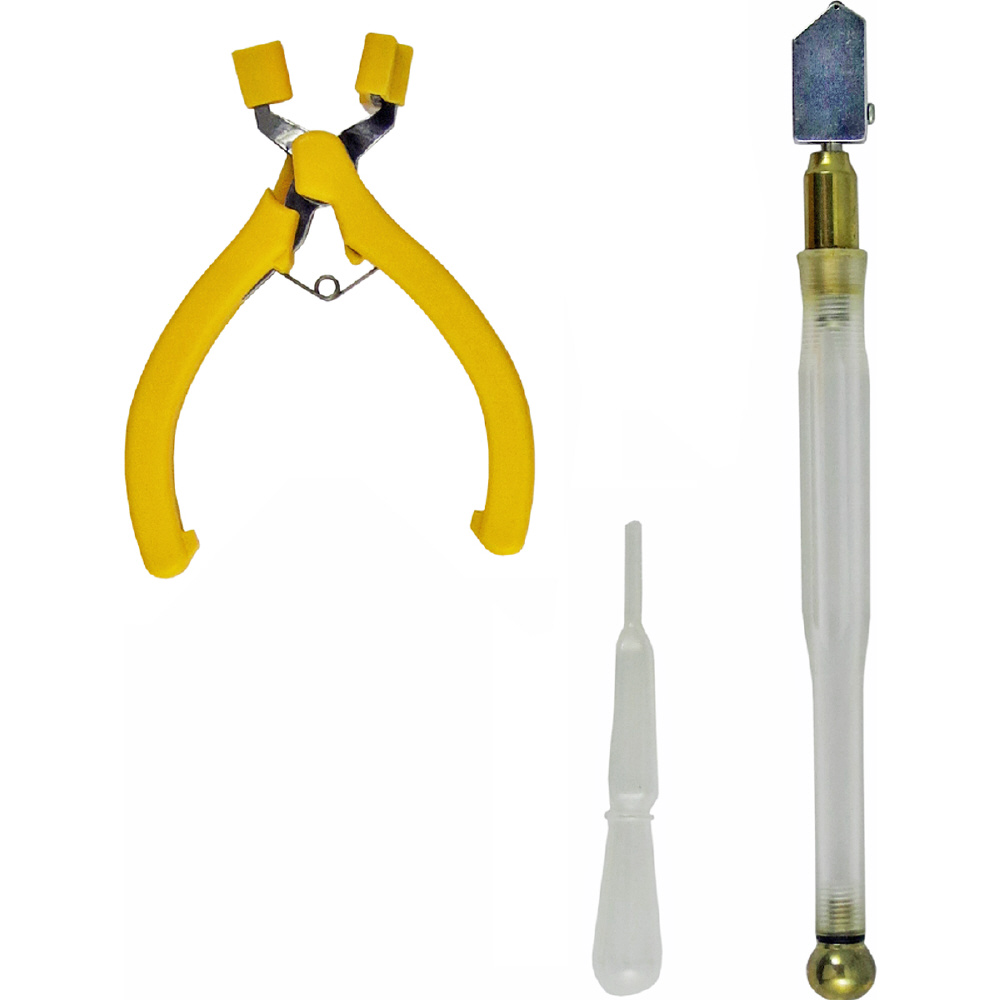 ガラスに折り筋を入れるオイル式ガラス切り(ガラスカッター)と、そのガラスを安全に折る為のガラスブレーカーのセットです