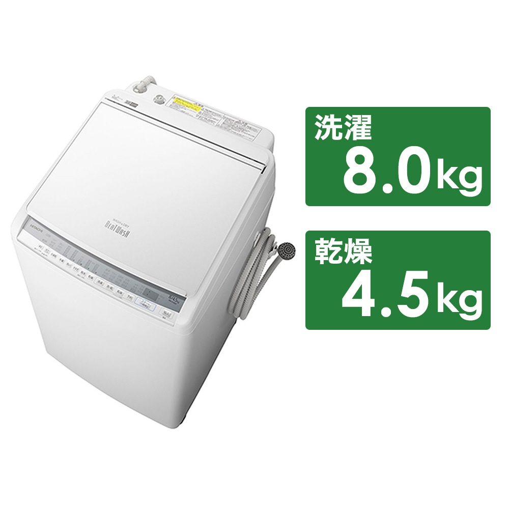 | 商品名 | BW-DV80F-W タテ型洗濯乾燥機 [洗濯8.0kg /乾燥4.5kg /ヒーター乾燥(水冷・除湿タイプ) /上開き] |