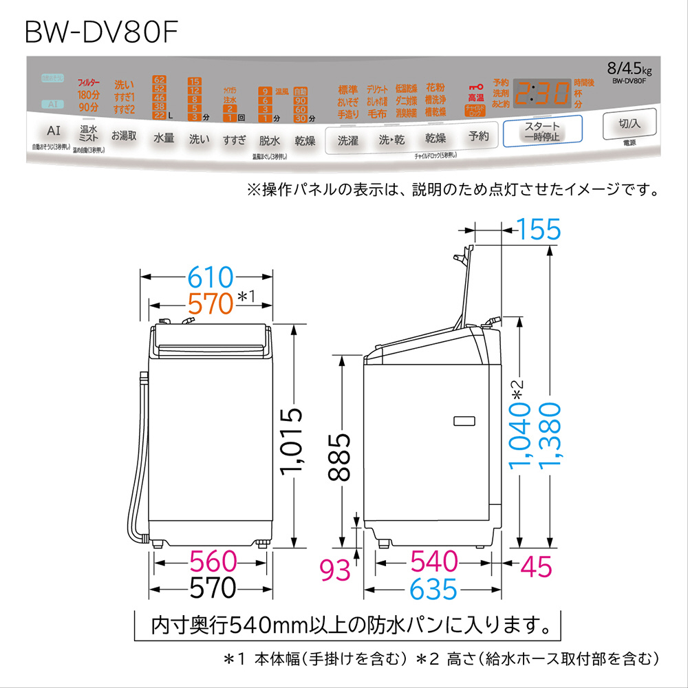 BW-DV80F-W タテ型洗濯乾燥機 [洗濯8.0kg /乾燥4.5kg /ヒーター乾燥(水冷・除湿タイプ) /上開き]