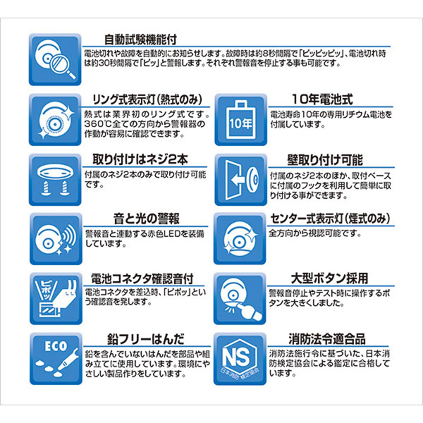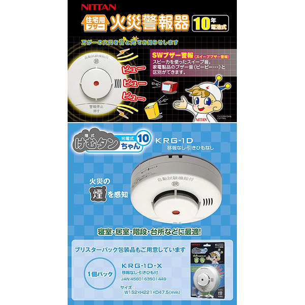 | 商品名 | 光電式住宅用火災警報器 自動試験機能付(電池式) けむタンちゃん10 KRG-1D-X |