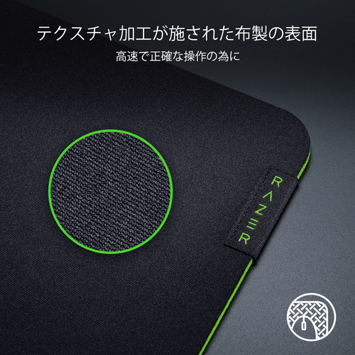 テクスチャード加工されたマイクロウィーブクロスサーフェスで 滑らかなスワイプとピクセル単位の正確な照準を可能にした ソフトマウスパッド