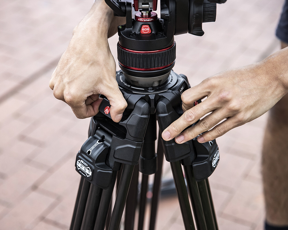 素早いセットアップを実現する新開発FASTレバーロックシステムを搭載したカーボンツインビデオ三脚