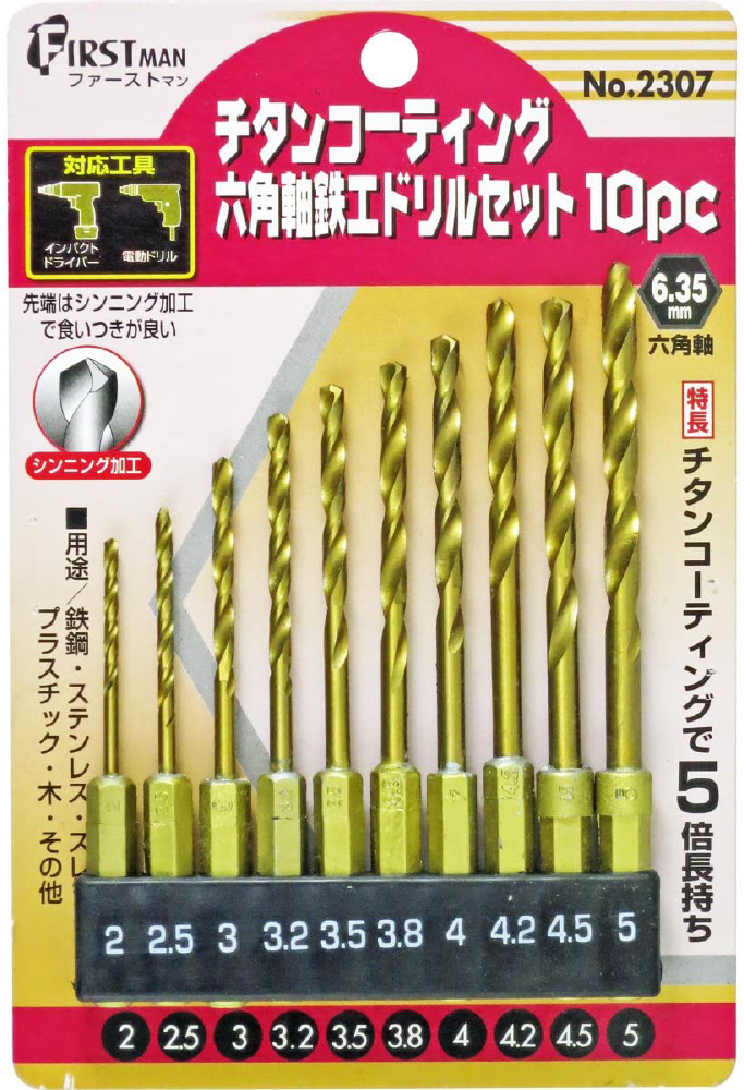 | 商品名 | 高芝ギムネ製作所 六角軸チタンドリルセット 高芝ギムネ製作所 No.2307 |
