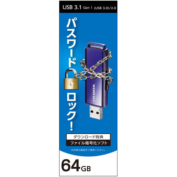 USBメモリ パスワードロック機能 ブルー EU3-PW/64GR [64GB /USB3.1 /USB TypeA /スライド式]