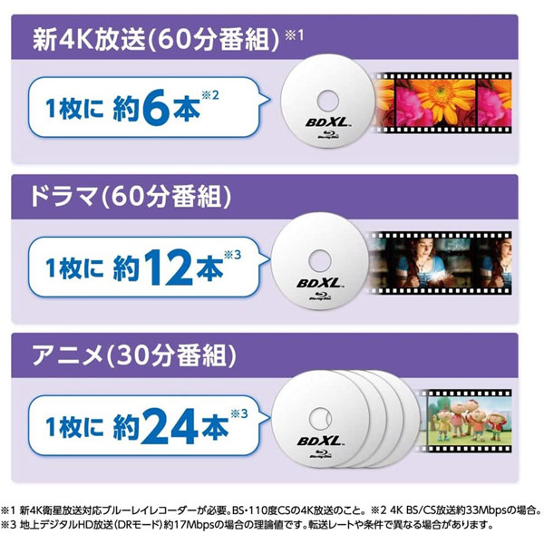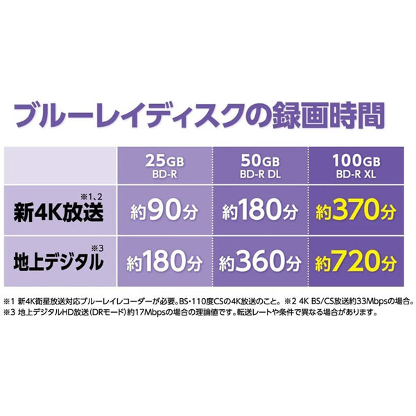 BD-R XL 容量:100GB(3層) 1回録画用 対応速度:2-4倍速 AACS対応