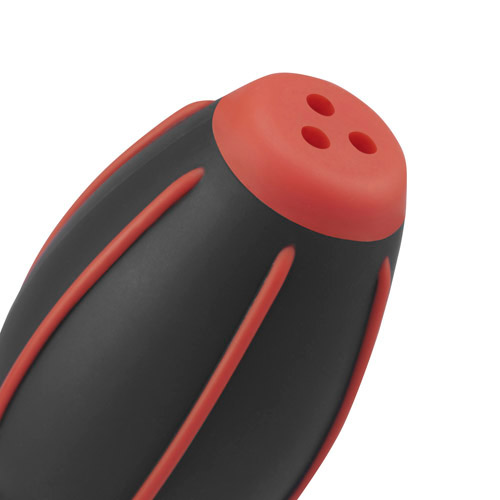 握りやすいグリップデザインと立てて置きやすいスタンド形状が特徴。