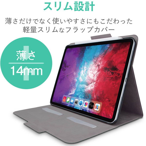 11インチ iPad Pro(第2世代)用 フラップケース ソフトレザー フリーアングル 薄型 スリープ対応 ブラック TB-A20PMWVFUBK