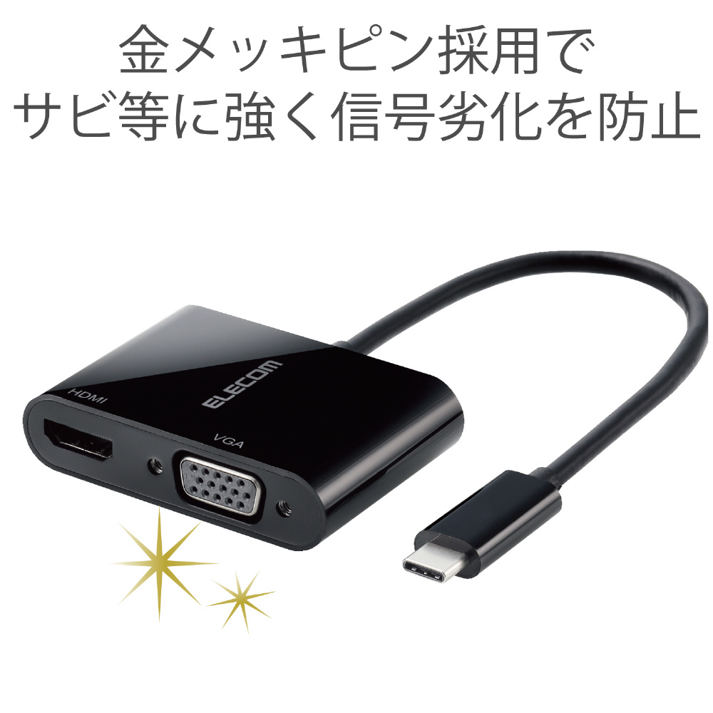 [USB-C オス→メス HDMI / VGA]変換アダプタ Windows11/Mac/ChromeOS/iPadOS対応 ブラック AD-CHDMIVGABK 【864】