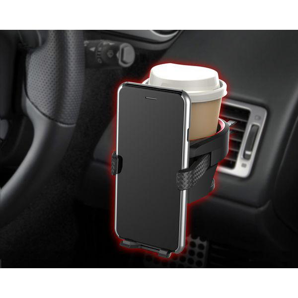 ●ドリンクとスマホを同時置きできるドリンクホルダーです。