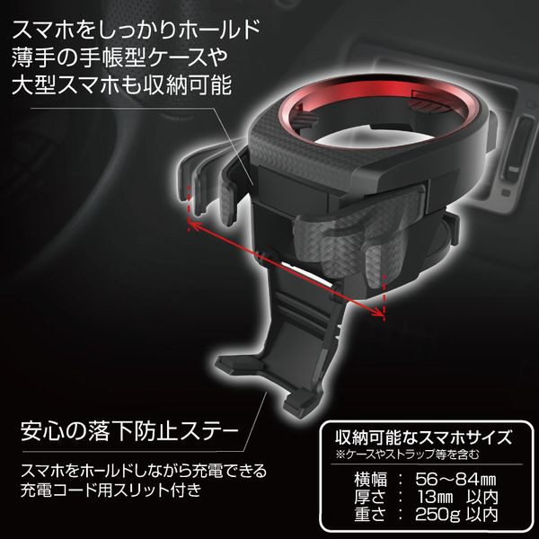 車内用品 EXEA(エクセア) ドリンクホルダー スマホドリンクホルダー カラー:レッド(コンビニコーヒー、細缶・太缶、太ペットボトル(500ml/550ml)を収納) レッド EB-212