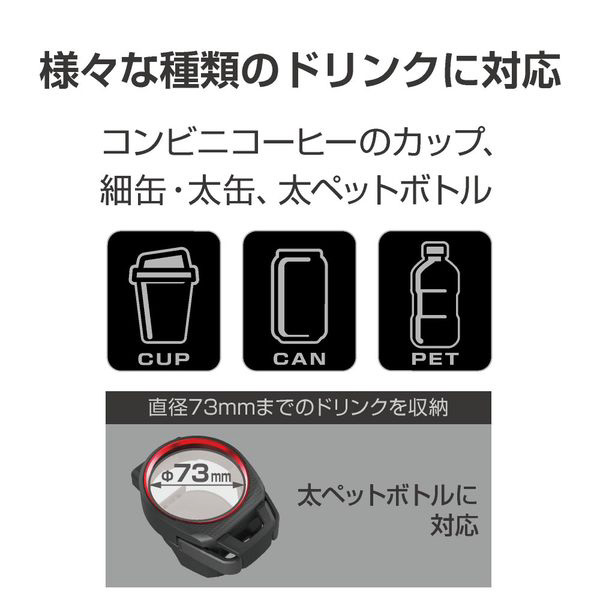 ●コンビニコーヒー、細缶・太缶、太ペットボトル(500ml/550ml)を収納できます。