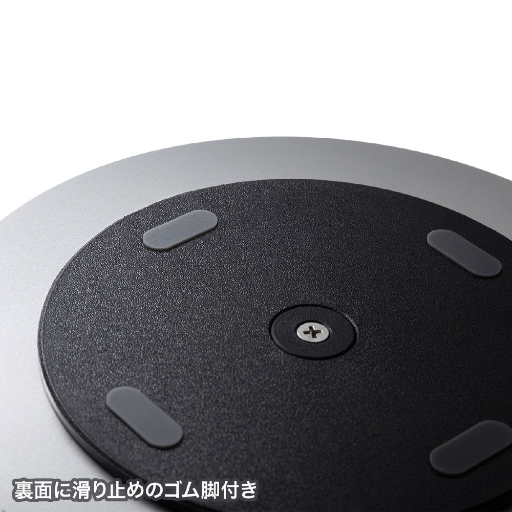 アルミ製でデスク周りに高級感を演出、360度回転台。直径220mm