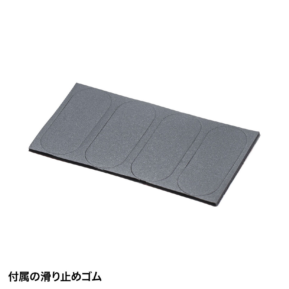 ●上に載せる機器が滑りやすいときに貼れる滑り止めゴムが付属しており、ストレスなく使用できます。