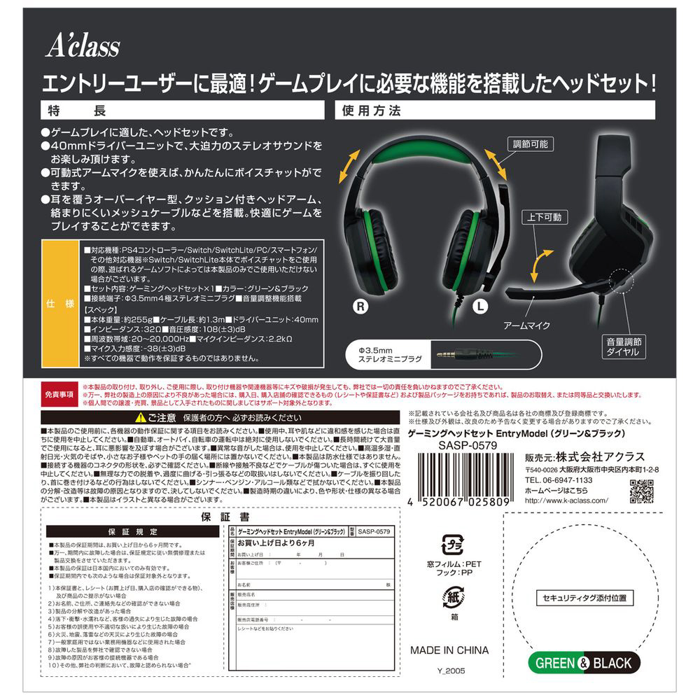 | 型番 | ヘッドセットENTRYグリーン |