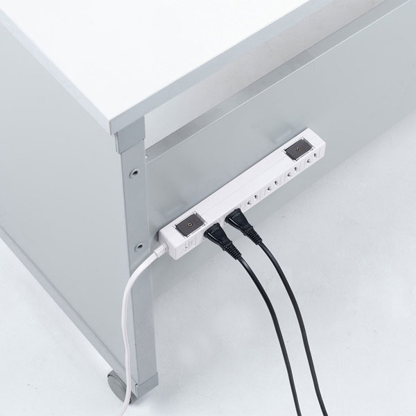 本体裏面(2個)と側面(2個)に強力なマグネットが付いているため、スチール製のキャビネットや天板の天面、側面どちらにも設置が可能です。