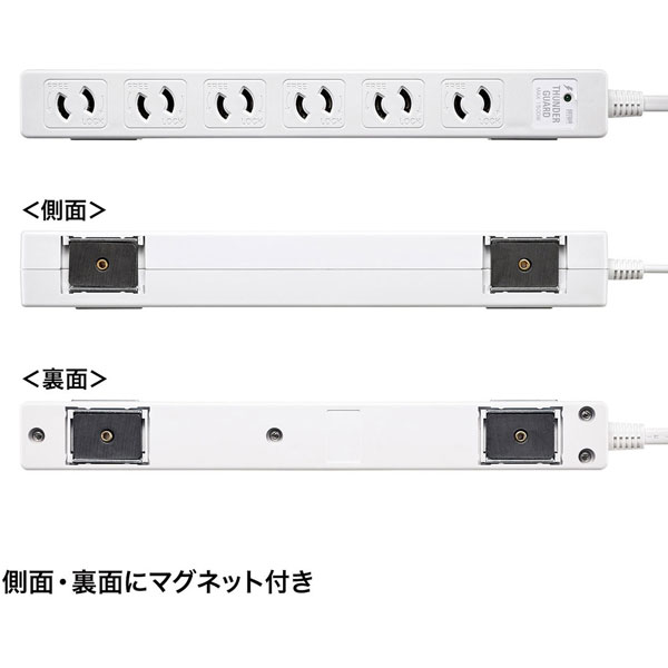 強力なマグネット4個付き雷ガード内蔵抜け止めタップ