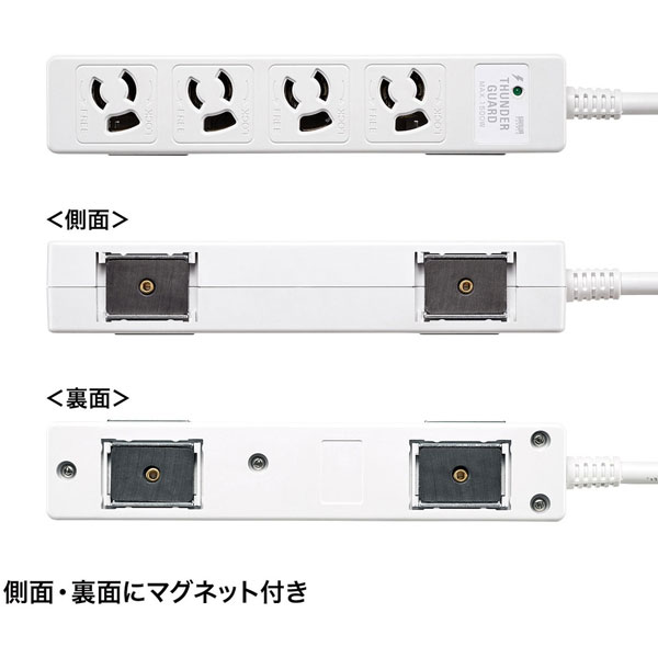 強力なマグネット4個付き雷ガード内蔵抜け止めタップ
